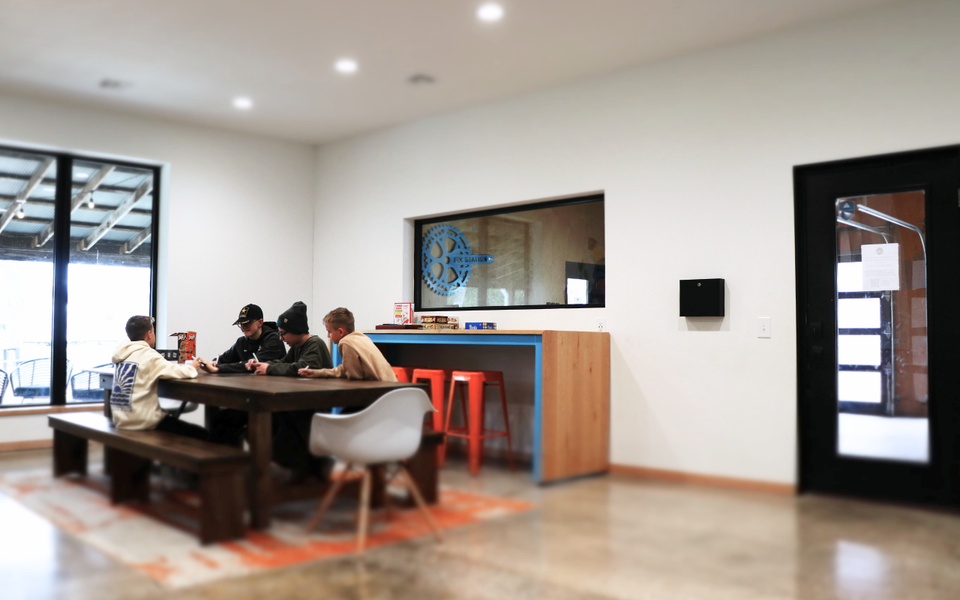 The BikeBarn is BaseCamp’s central gathering space. A place for guests to relax, connect, and spend time together. Inside you’ll find large tables, comfortable seating, a pool table, games, and BaseCamp merch, while outside a wraparound porch and outdoor gathering areas offer space to eat, lounge, and enjoy the fresh air. The BikeBarn kitchen can also be reserved for larger group meals.